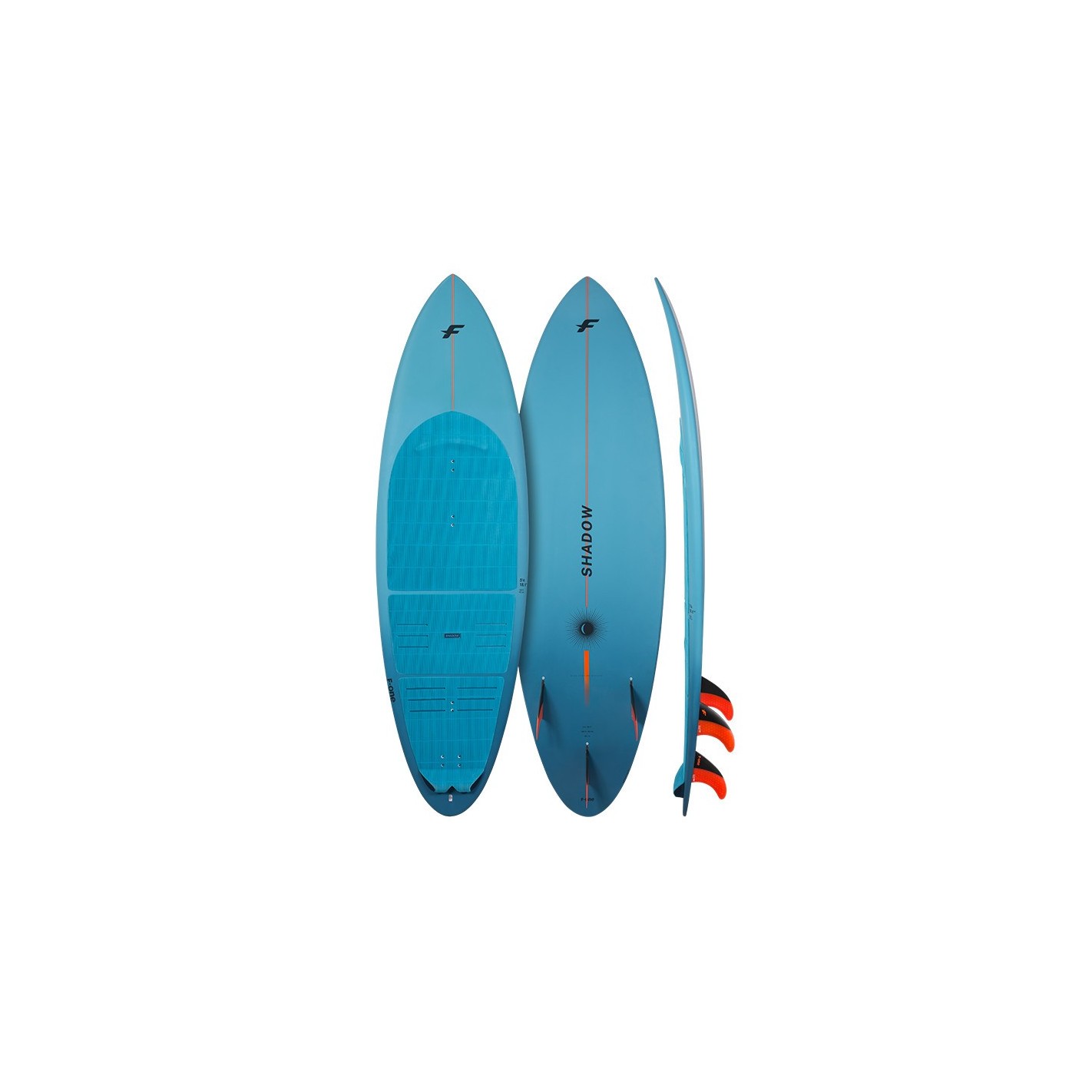 The SHADOW is available in 5’4, 5’6 and 5’8. All sizes are equipped with a full pad and foot straps inserts. The 5’4 board come with a set of the F-ONE Flow Carbon XS fins. The 5’6 and 5’8 come with a set of F-ONE Flow Carbon M fins.