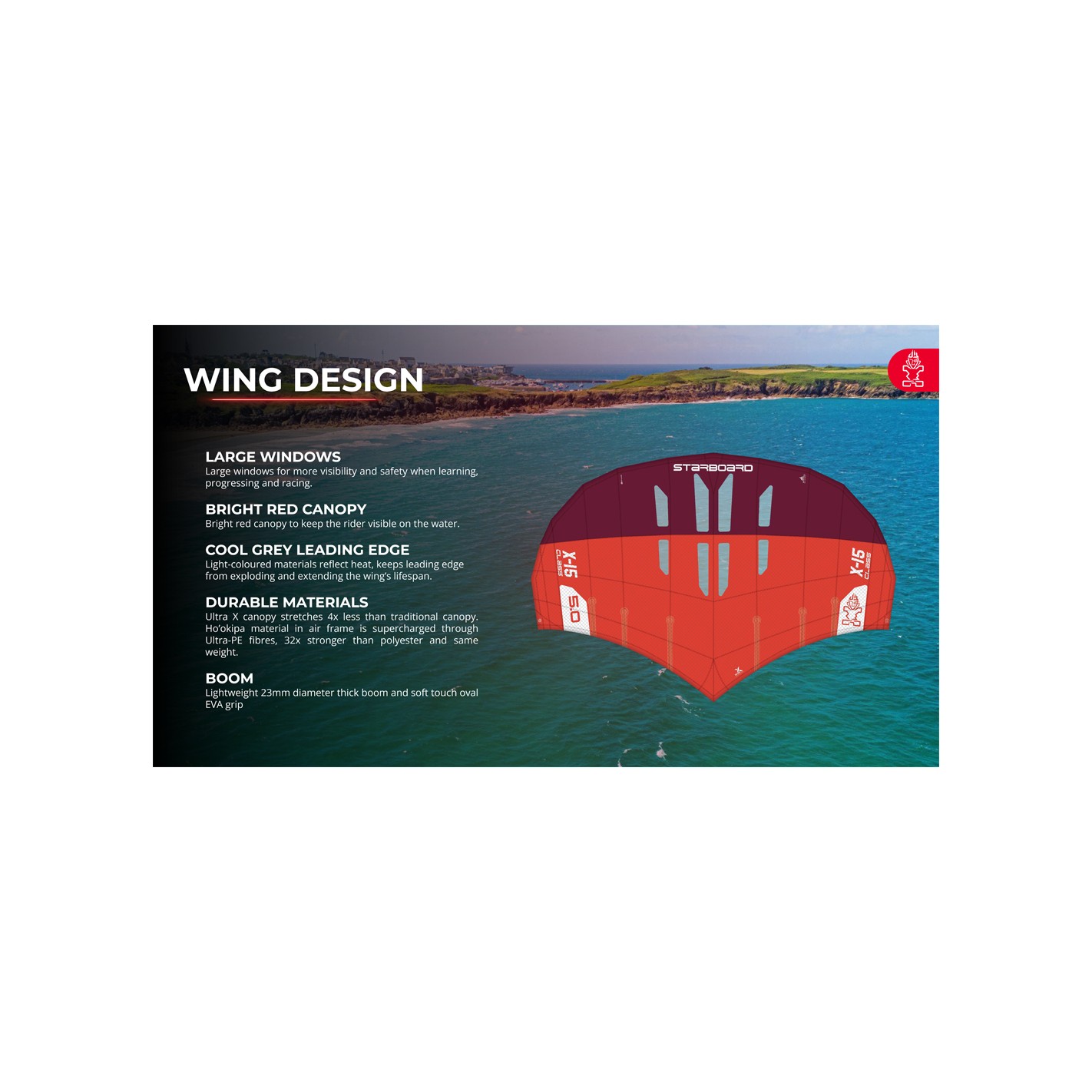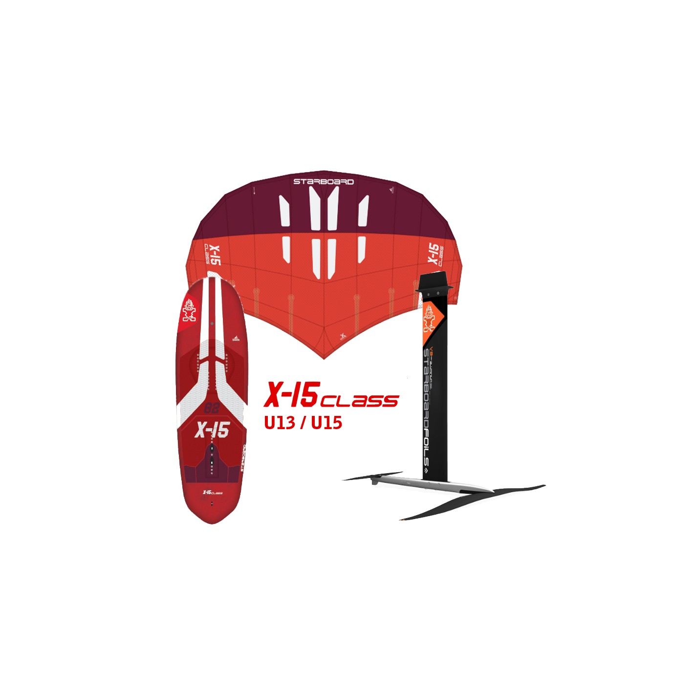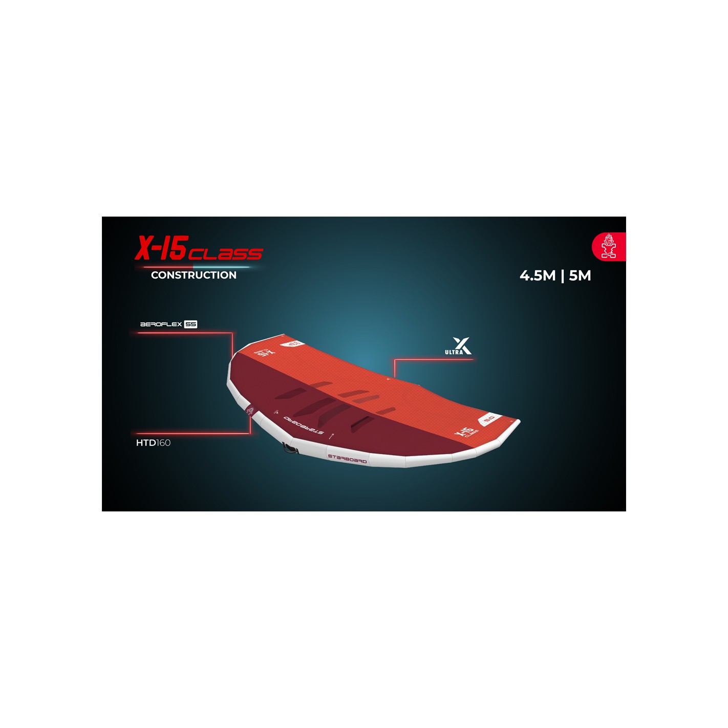 | Wing | X-15 4.5m² (Dacron) | X-15 5.0m² (Dacron) | X-15 5.5m² (Ho'okipa) | X-15 6.0m² (Ho'okipa) | X-15 6.0m² (Ho'okipa) | X-15 6.5m² (Ho'okipa) |