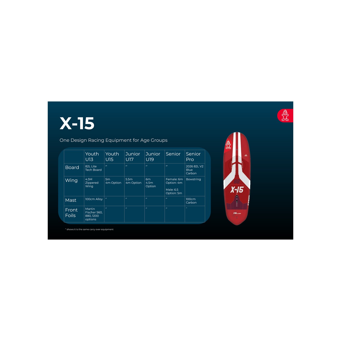 | Board | X-15 82L Lite Tech | X-15 82L Lite Tech | X-15 82L Lite Tech | X-15 82L Lite Tech | X-15 82L Blue Carbon | X-15 95L Blue Carbon |